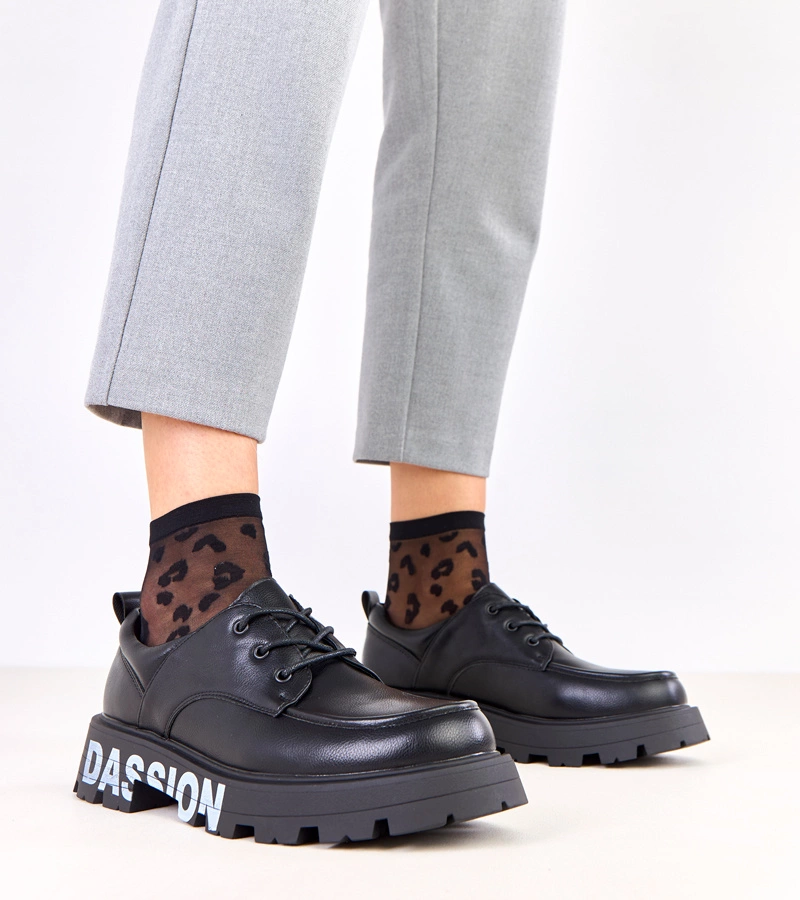 Hers Czarne damskie półbuty z nadrukiem na podeszwie