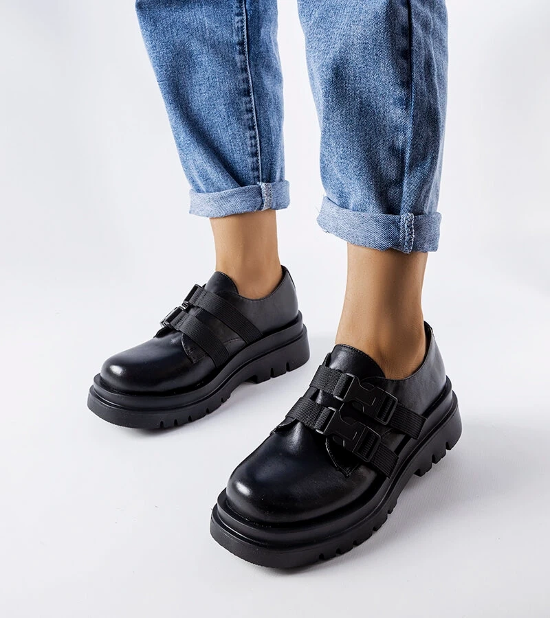 Półbuty czarne na masywnej podeszwie