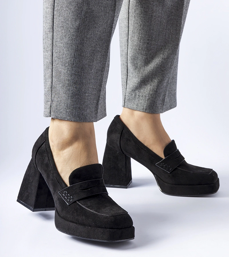 Czarne czółenka na wysokim słupku