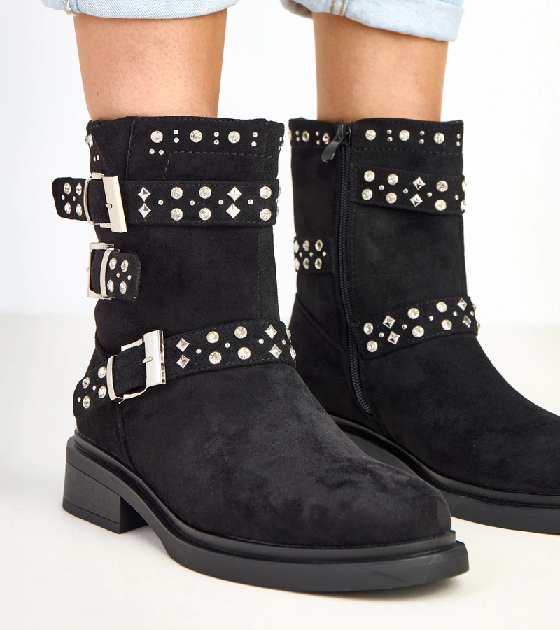 Hers Czarne botki z elastyczną wstawką i ozdobną cholewką