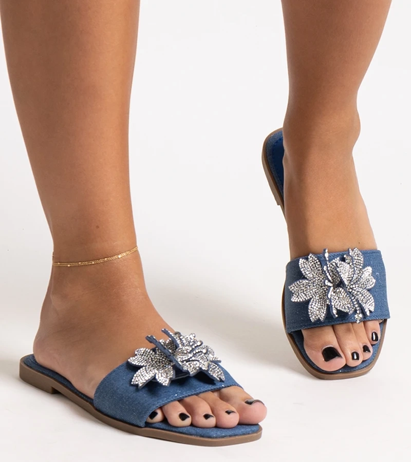 Niebieskie klapki z cyrkoniowym kwiatkiem