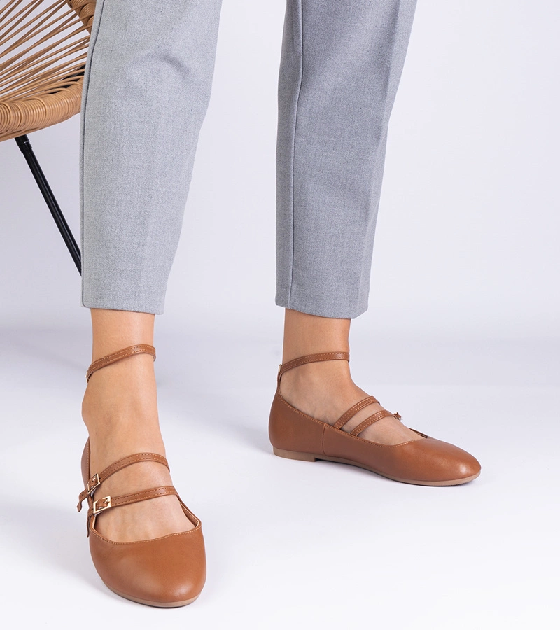 Hers Baleriny Damskie Brązowe z Ekoskóry ze Sprzączkami