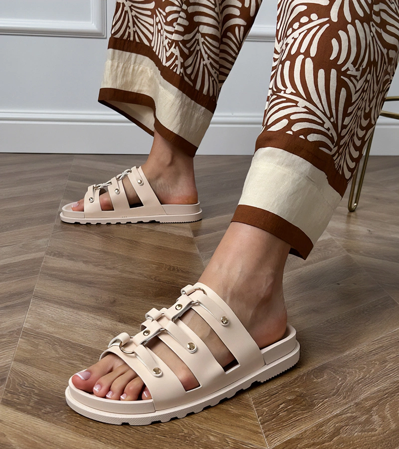 Hers Panterkowe damskie klapki z ozdobnymi klamrami