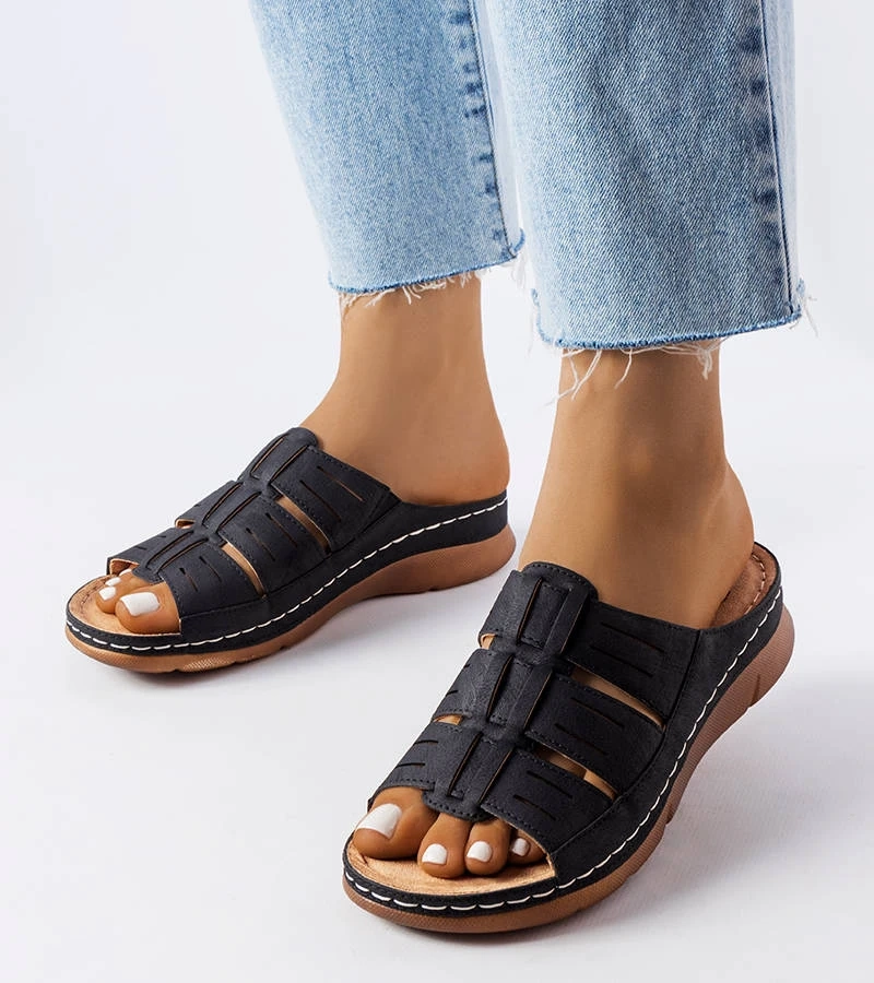 Fioletowe płaskie sandały zdobione cyrkoniami