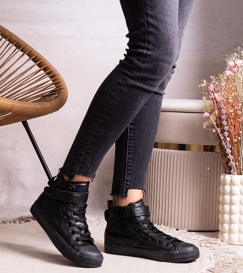 Hers sneakersy damskie czarne ażurowe na masywnej podeszwie