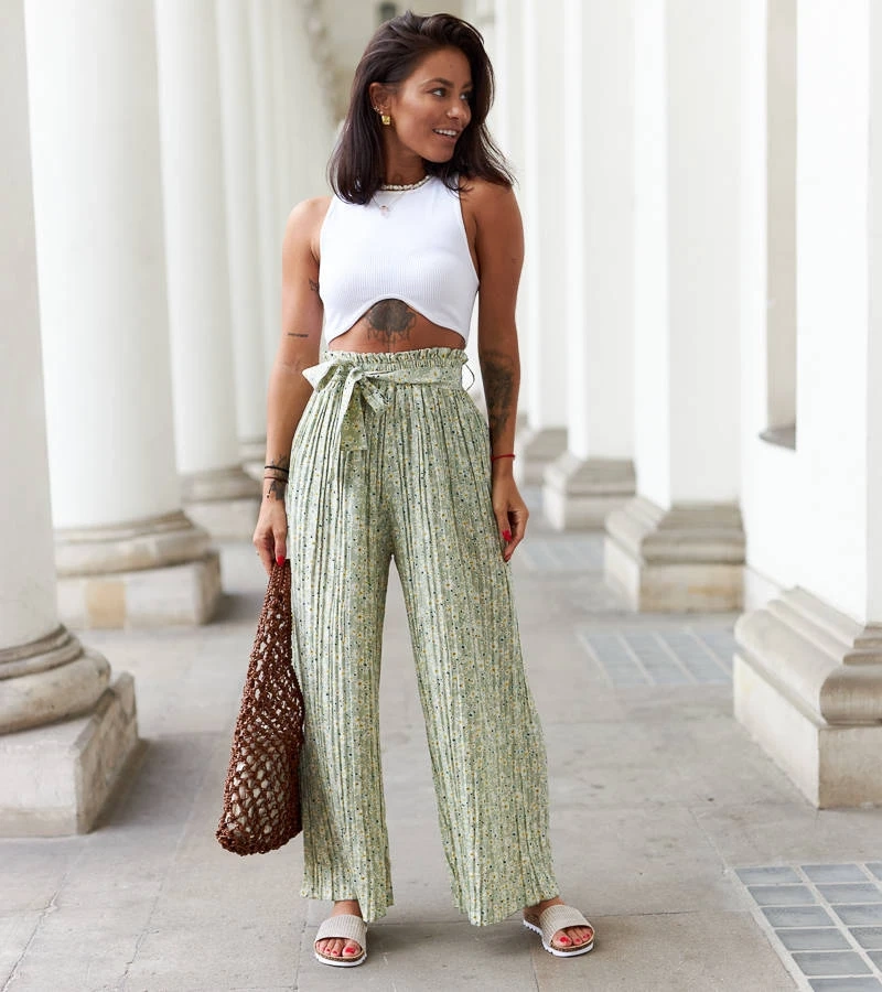 Hers Zielone szerokie plisowane spodnie
