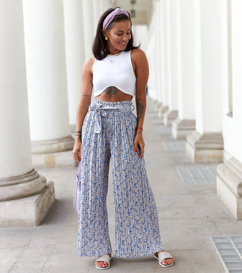Hers Niebeskie szerokie plisowane spodnie