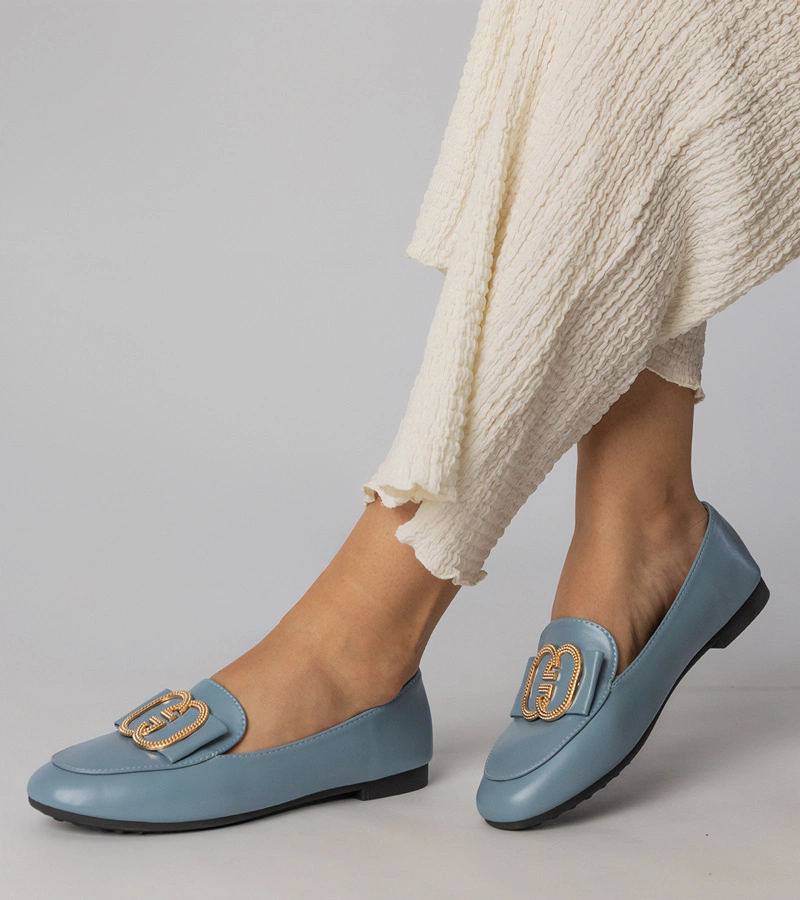 Hers Niebieskie mokasyny damskie ze złotą ozdobą