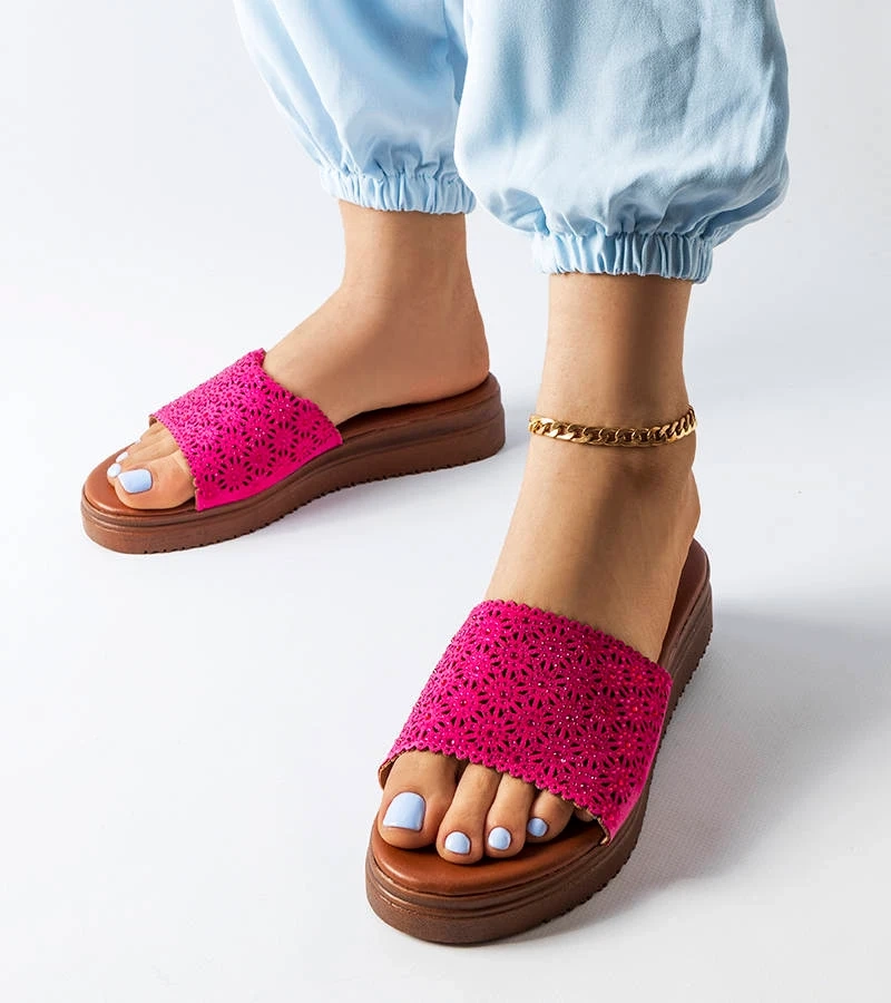 Ciemnoróżowe ażurowe klapki zdobione cyrkoniami