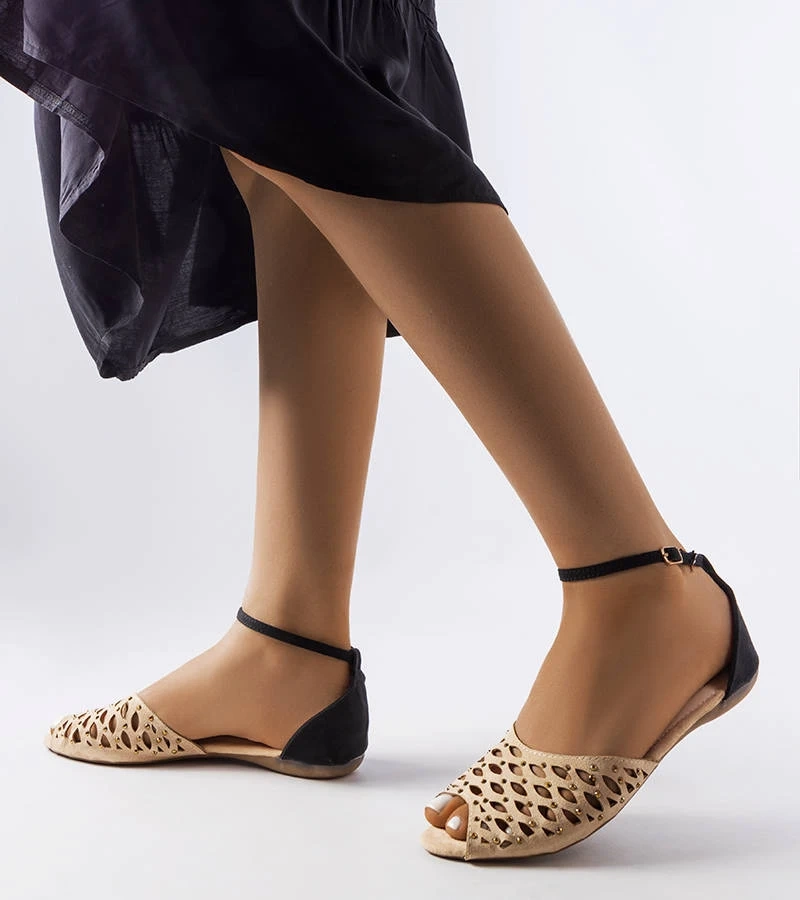 Hers Beżowe płaskie sandały zdobione cyrkoniami