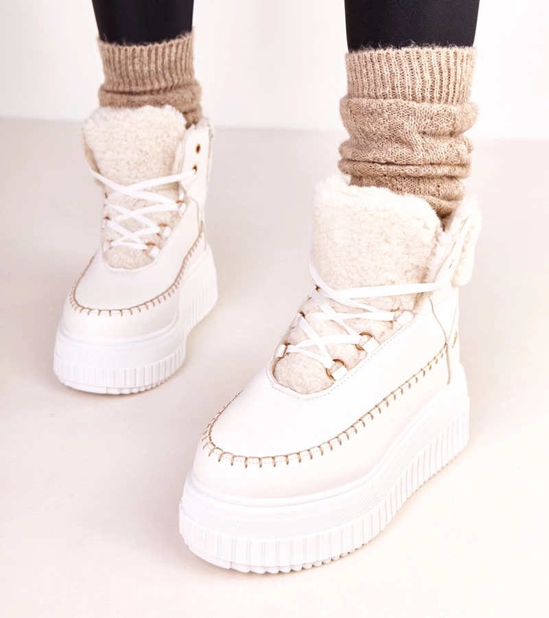Hers Beżowe niskie śniegowce na platformie z ekoskóry