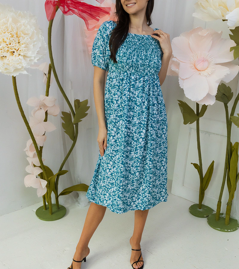 Hers Ciemnozielona sukienka midi w kwiaty