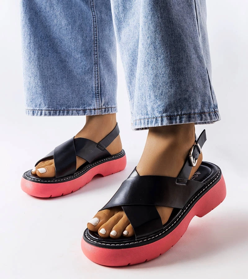 Czarne sandały na różowej platformie