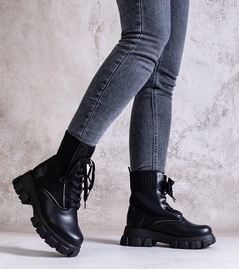 Czarne botki eko-skórzane workery na platformie