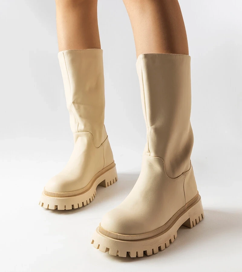 Kremowe botki ze skarpetkową cholewką