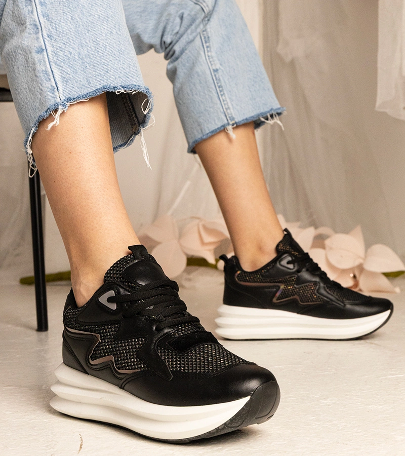 Hers Czarne sneakersy damskie sportowe z brokatem