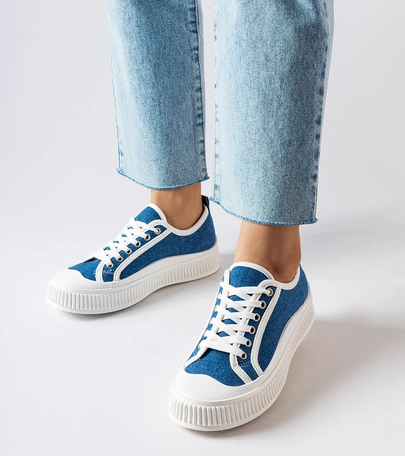 NIebiesko-białe buty ze srebrnym zdobieniem