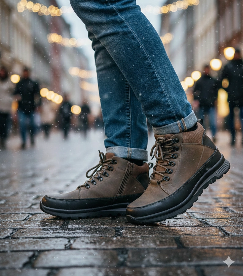 Hers Szare trapery męskie ocieplane futrem na platformie