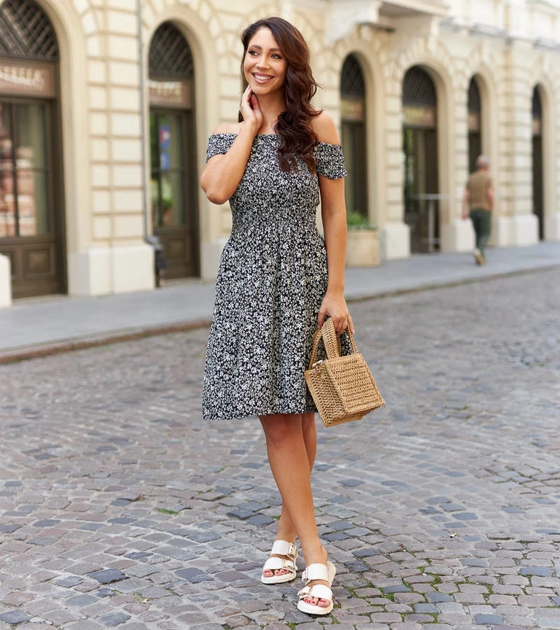 Granatowa sukienka mini w kwiaty na ramiączkach