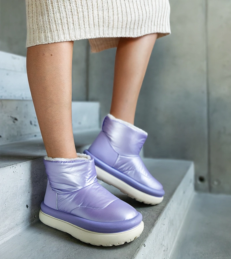 Hers Fioletowe botki na szpilce z ozdobnym łańcuszkiem