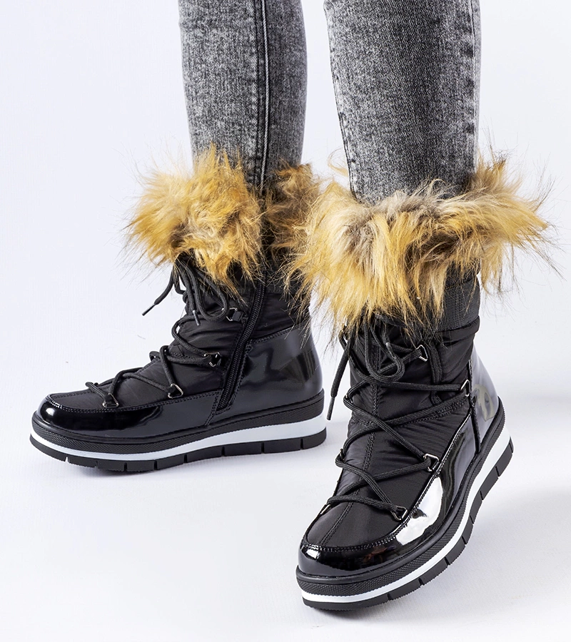 Czarne lakierowane śniegowce z futerkiem na platformie
