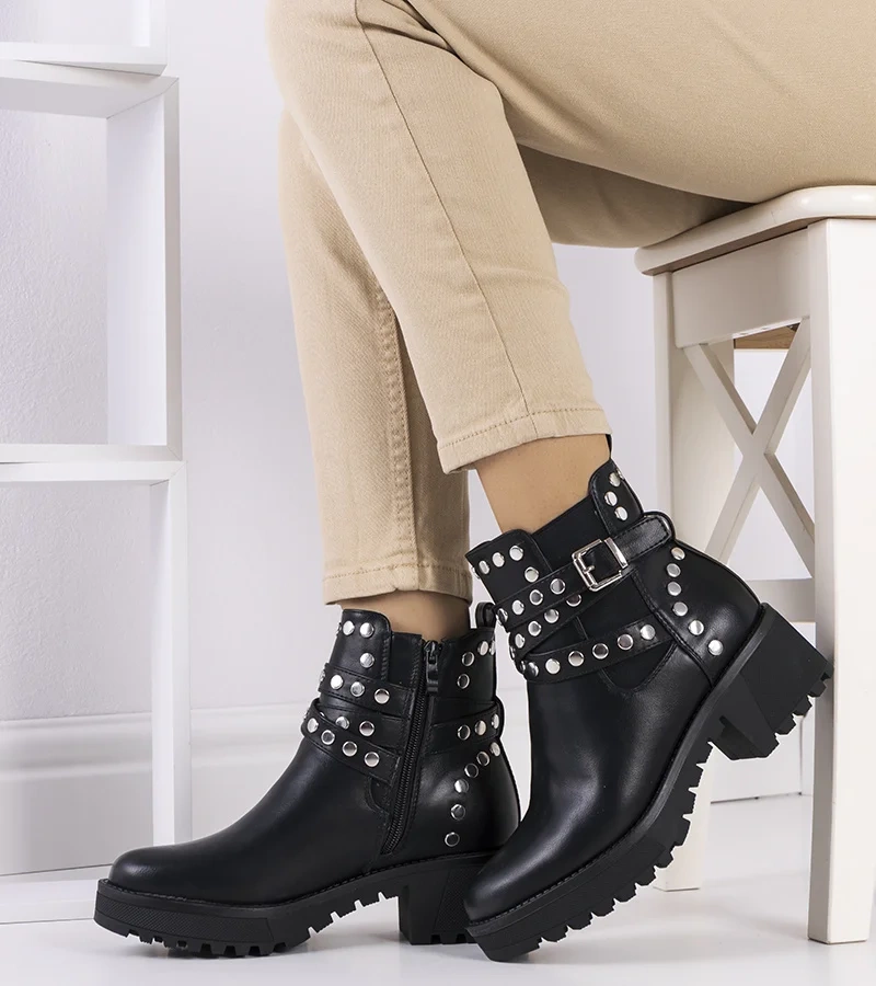 Czarne botki z ozdobnym zamkiem eko-skóra