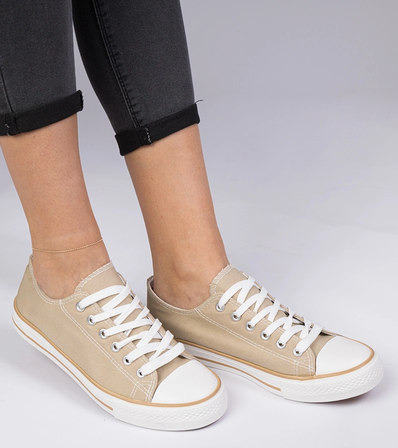 Hers Beżowe sneakersy sportowe z plecioną wstawką