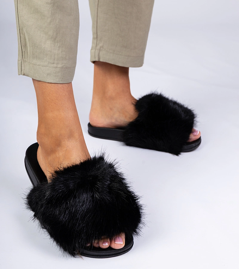Hers Czarne klapki eleganckie zdobione łańcuchem