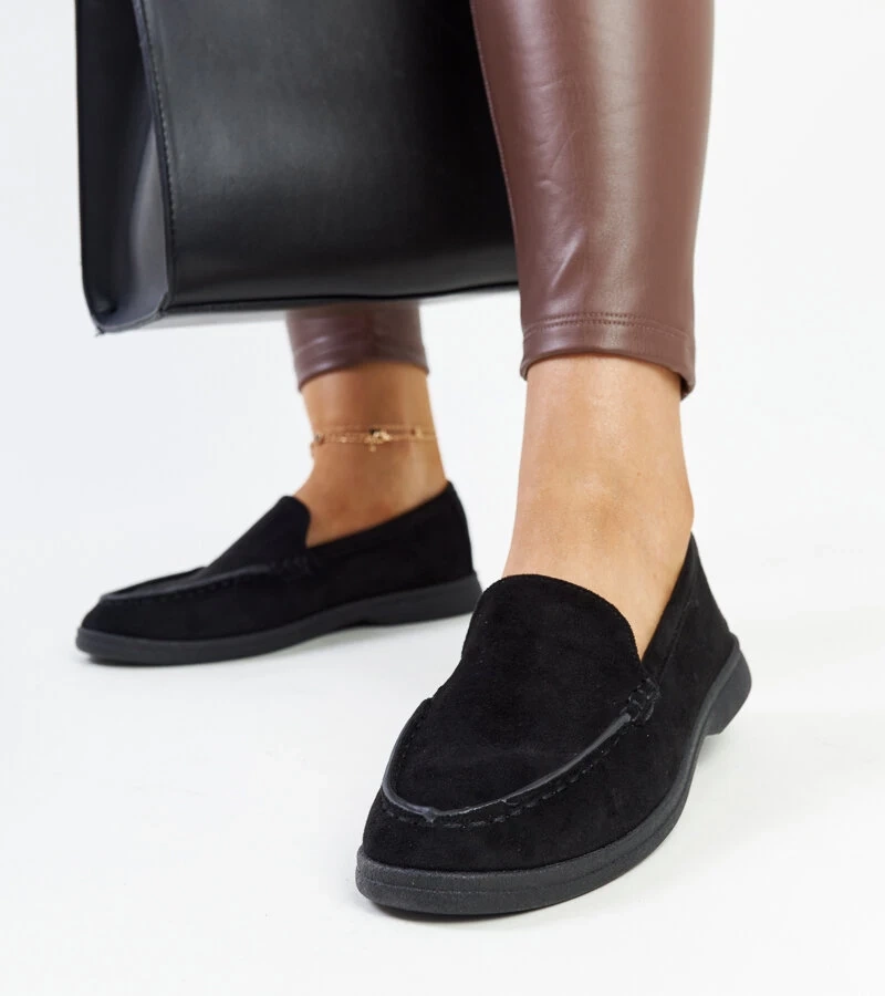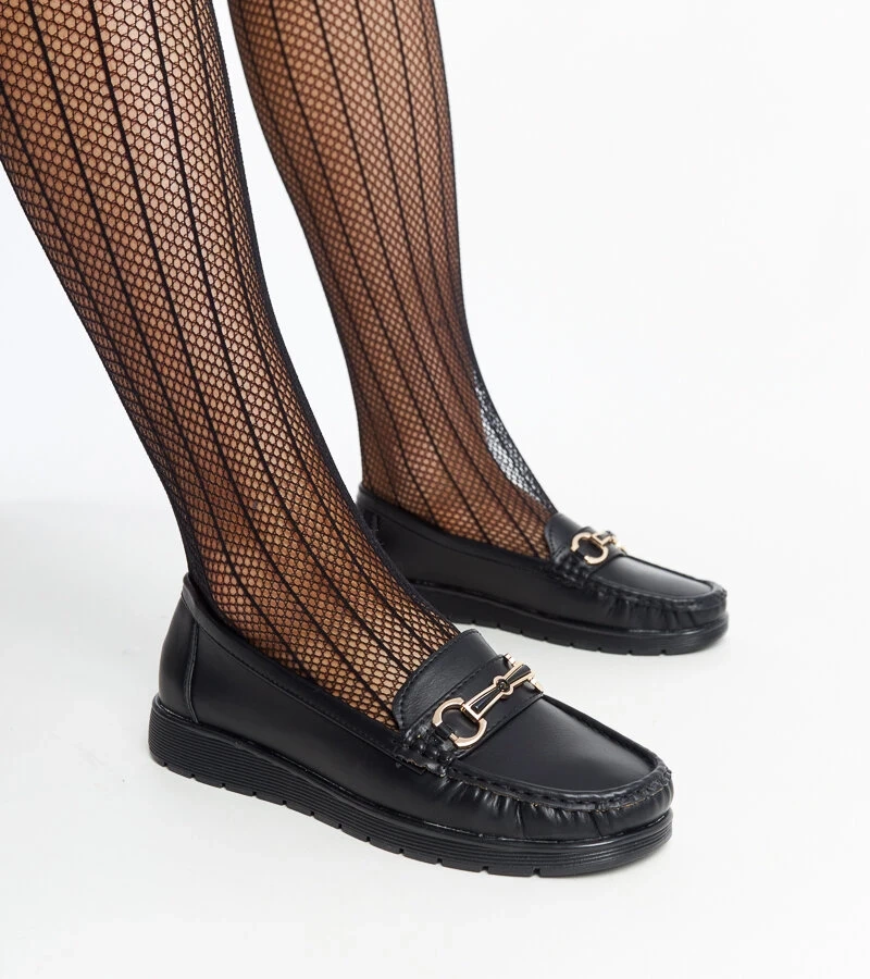 Czarne baleriny z kokardką i skórzaną wkładką