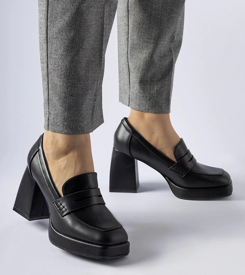 Czarne skórzane mokasyny na platformie GOE LL2N4039