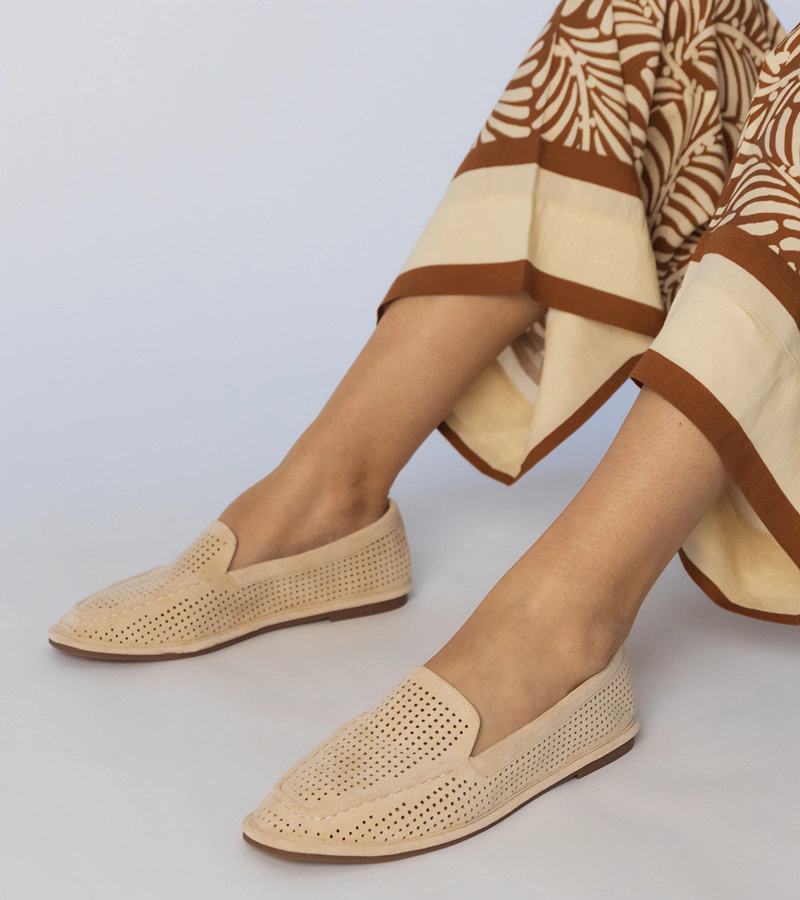 Hers Beżowe mokasyny ażurowe z ekozamszu