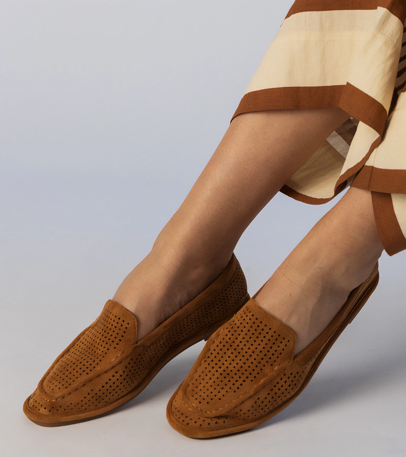 Hers Karmelowe mokasyny ażurowe z ekozamszu