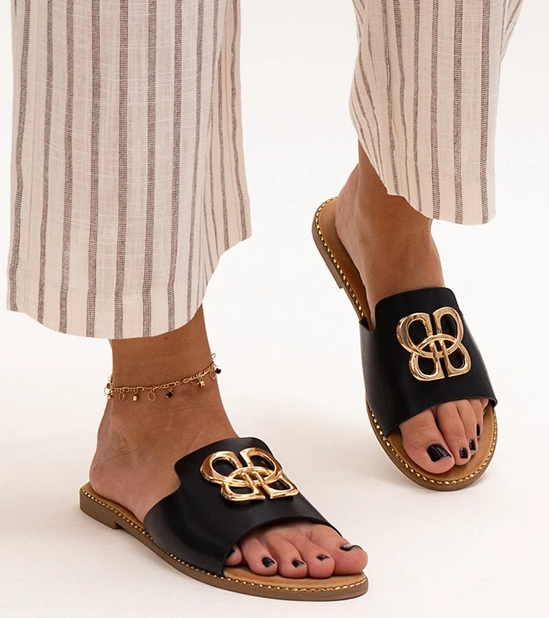 Hers Czarne sneakersy damskie z satynowymi sznurówkami