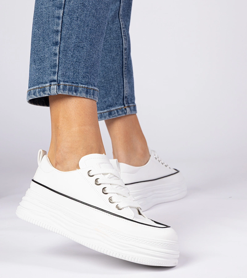 Hers Białe sneakersy stylowe na masywnej podeszwie