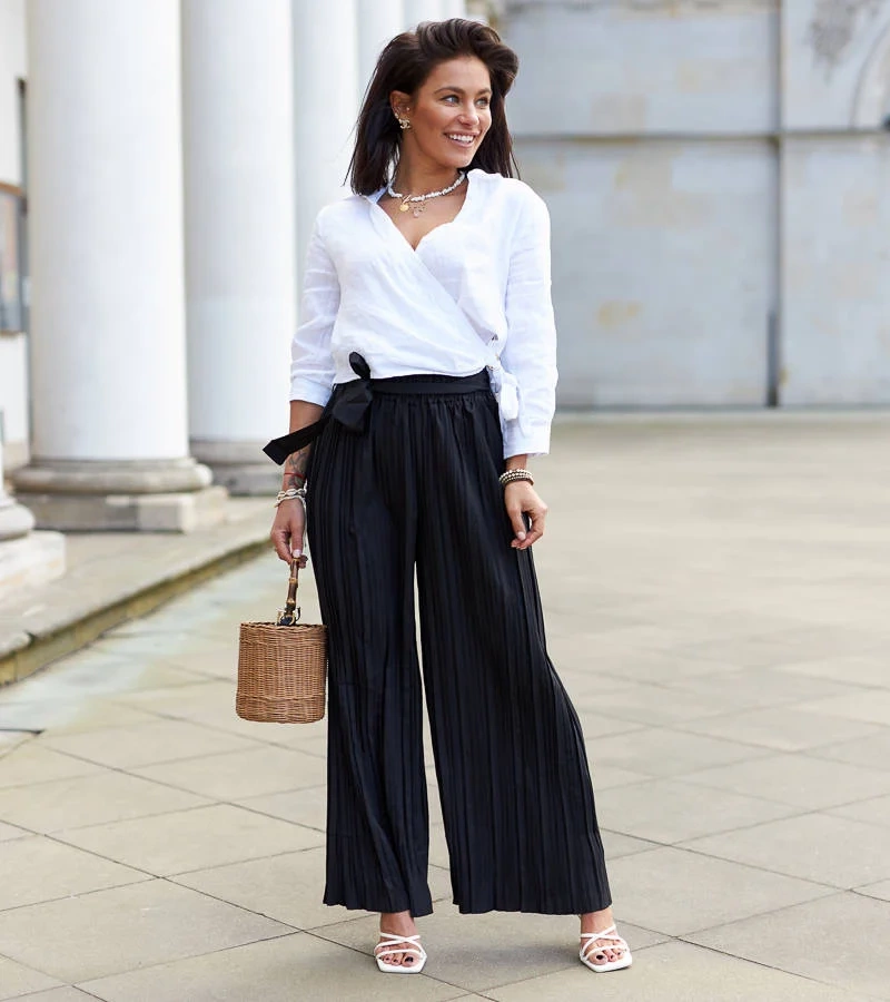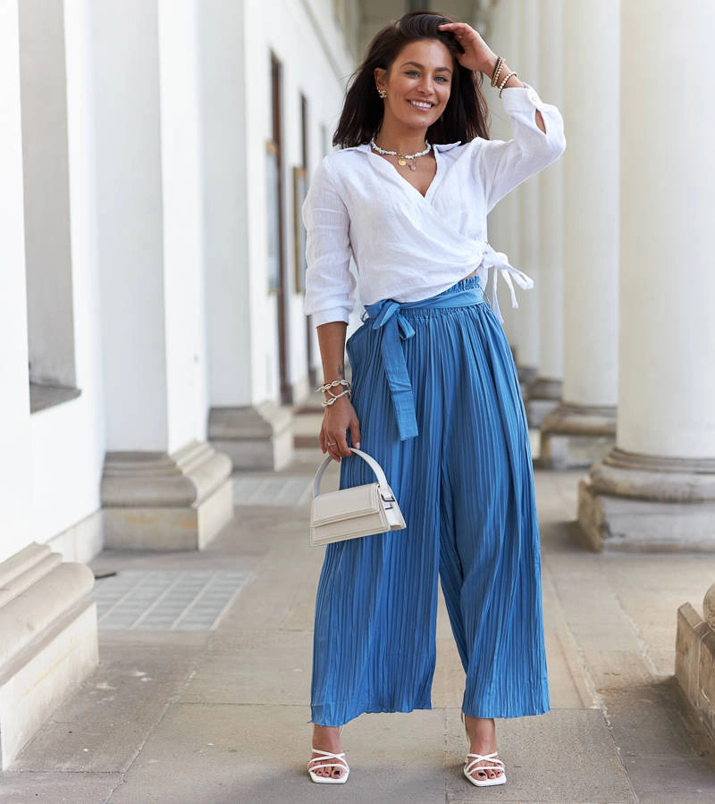 Wielokolorowe damskie plisowane spodnie w kwiatki