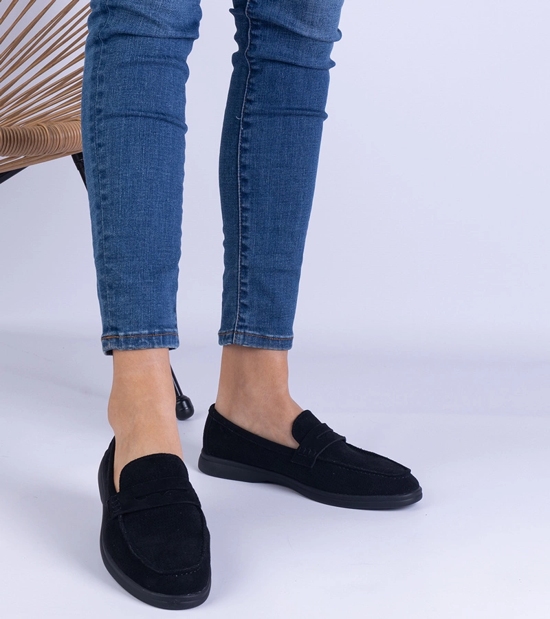 Hers Mokasyny Damskie Czarne Klasyczne Ażurowe z Ekozamszu