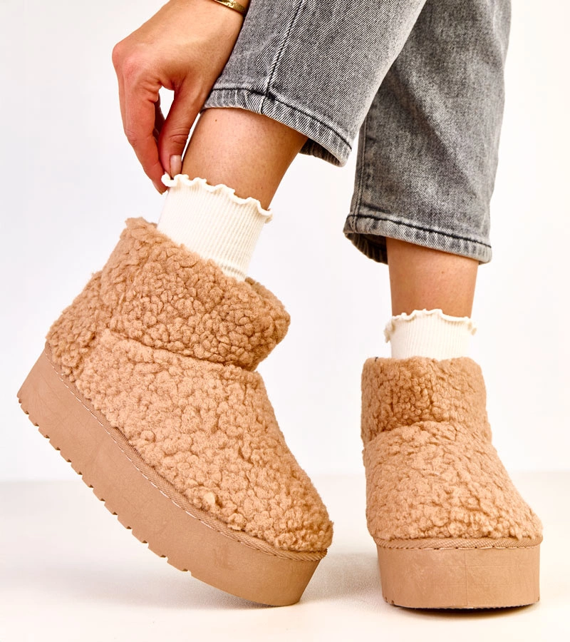 Hers Beżowe śniegowce damskie z ozdobnym sznurkiem