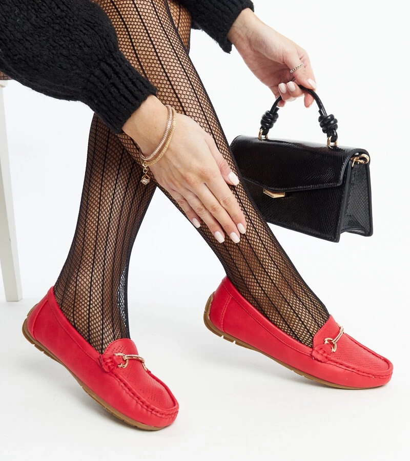 Czerwone balerinki o matowym wykończeniu zapinane na sprzączkę
