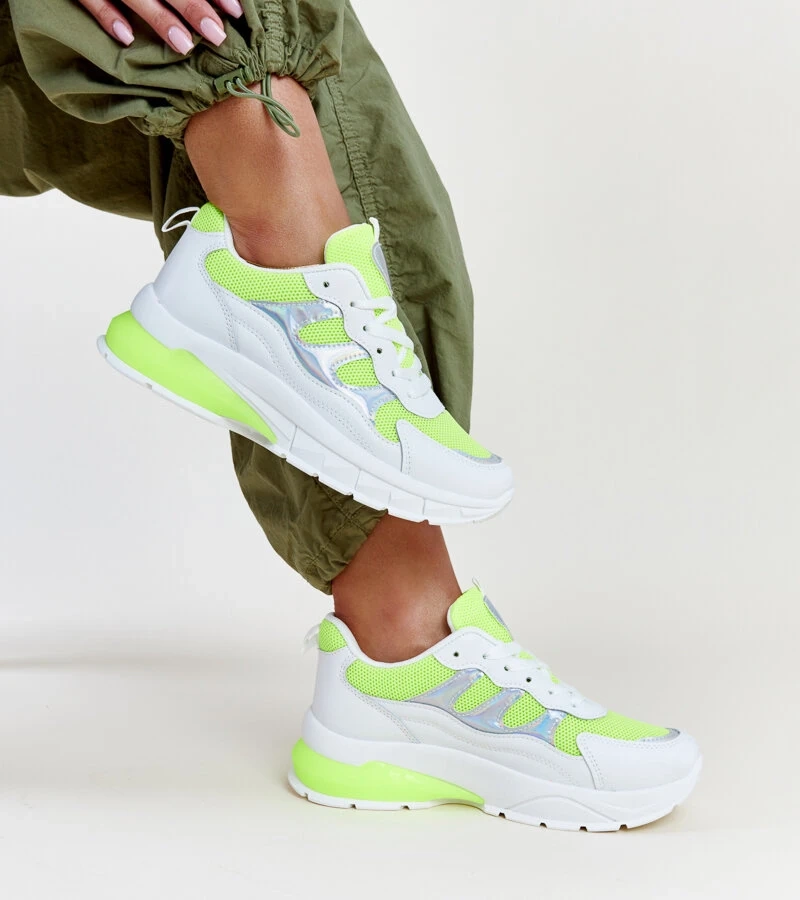 Szaro-białe sneakersy skórzane na grubej podeszwie