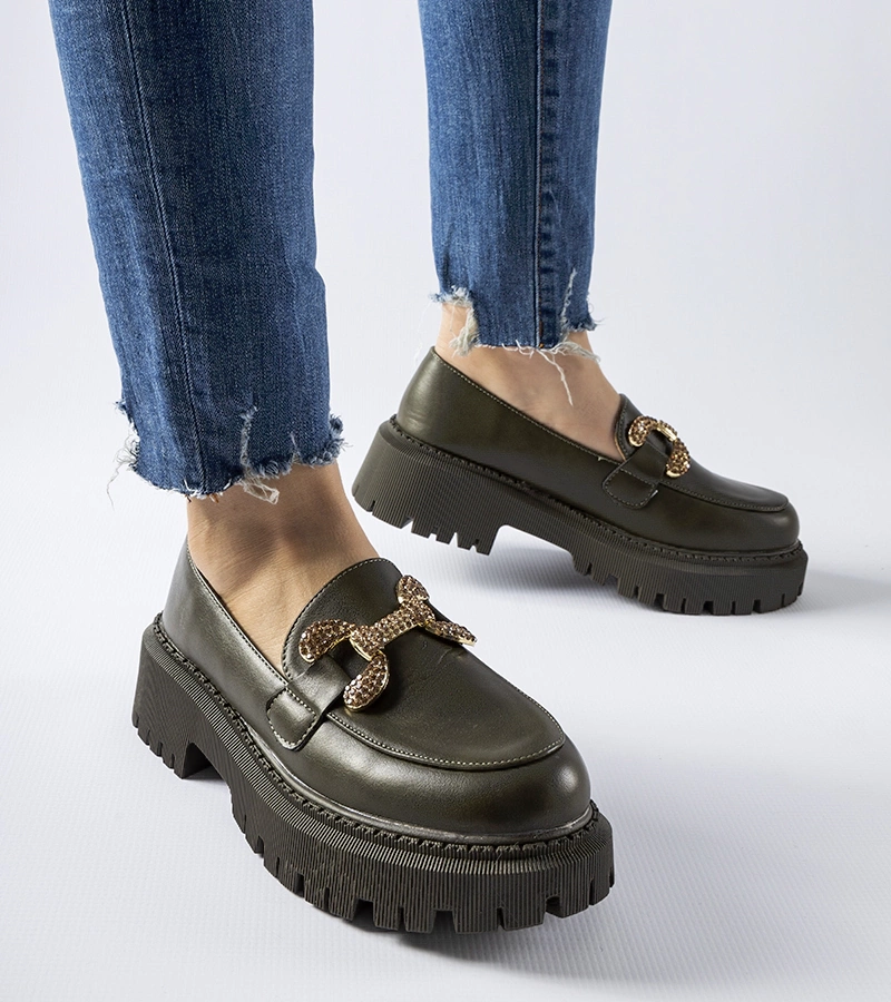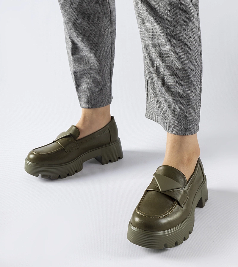 Zielone mokasyny na masywnej podeszwie