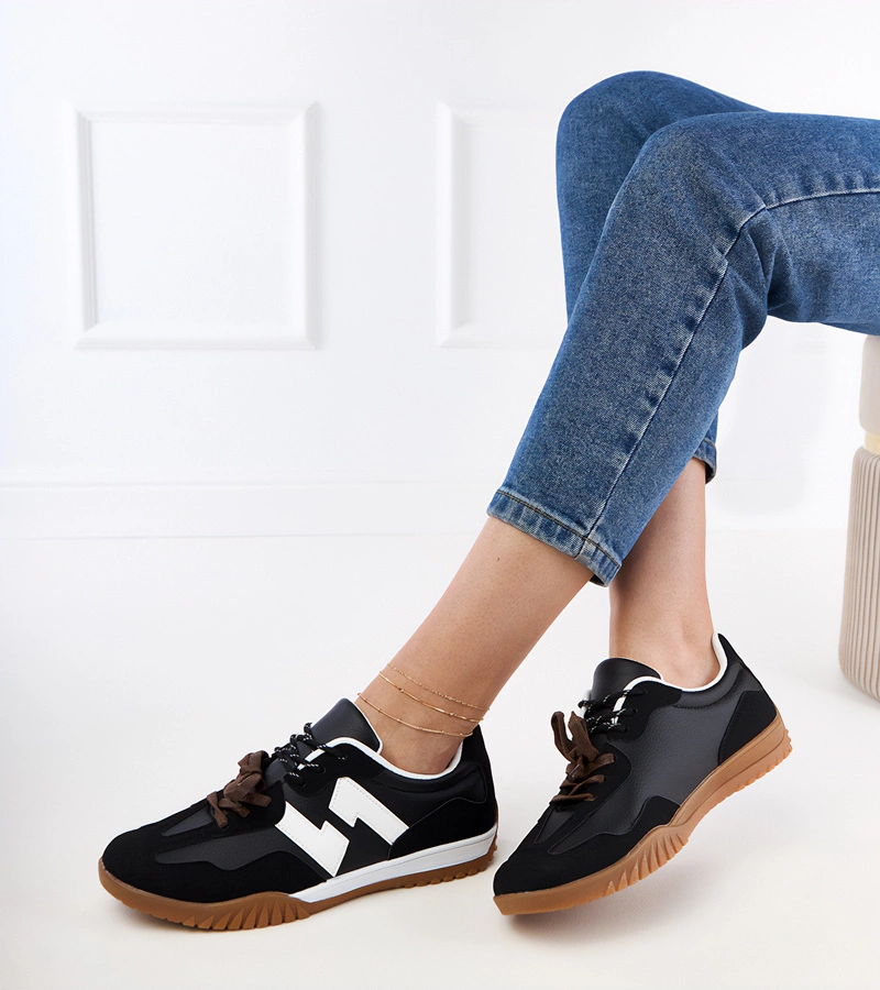 Hers Czarne sneakersy z cyrkoniami i metaliczną wstawką