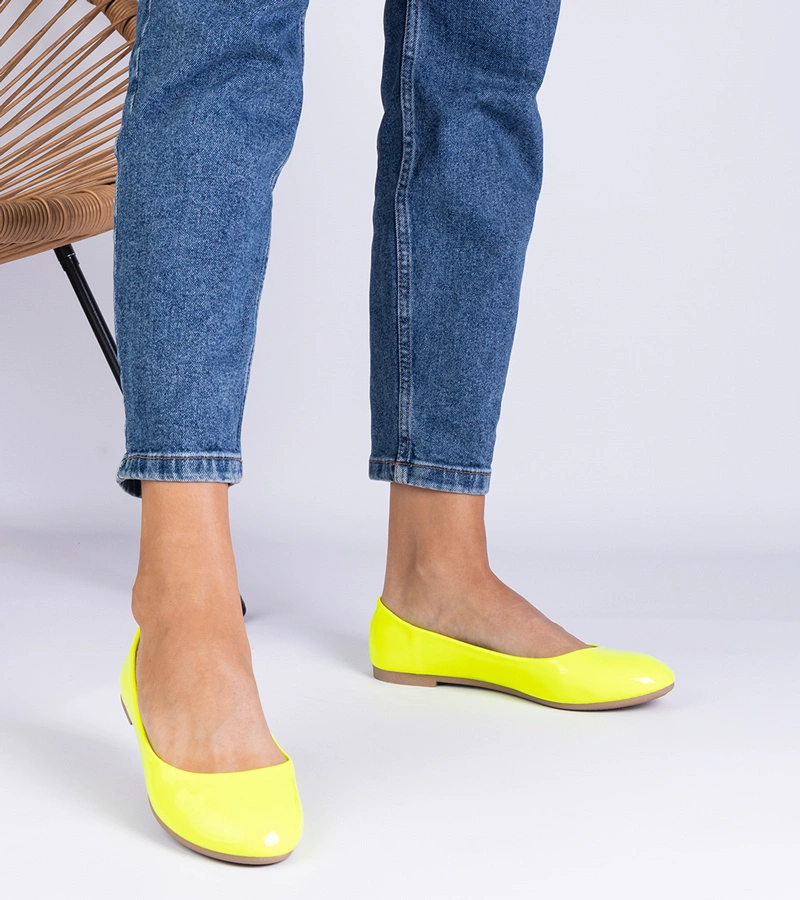 Hers Złote balerinki eleganckie damskie z ozdobą