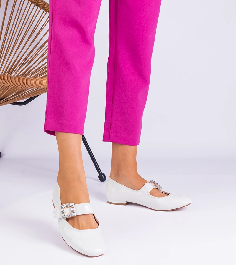 Hers baleriny damskie białe lakierowane z klamrą