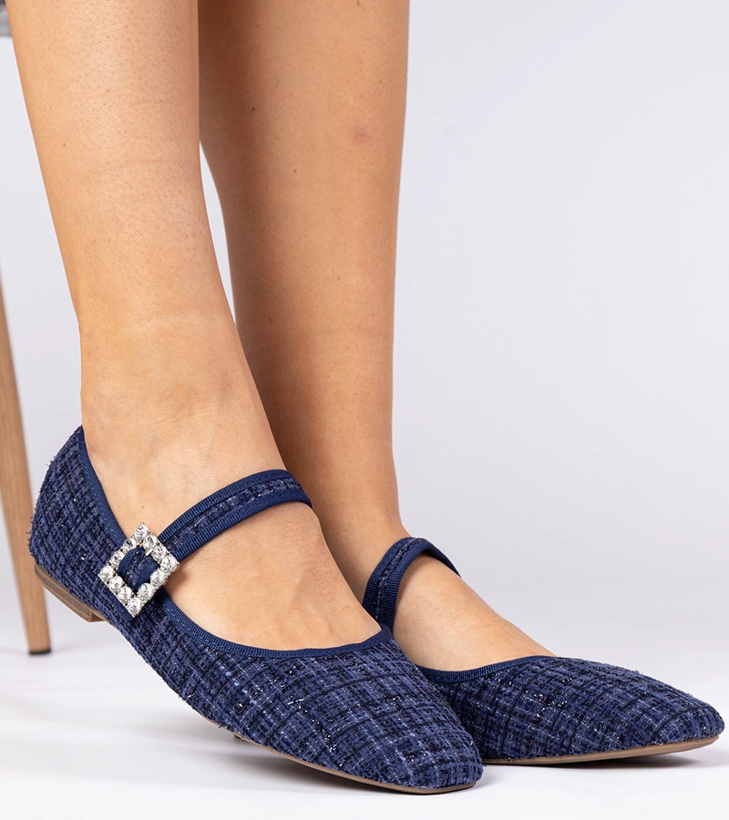 Hers Granatowe damskie balerinki z klamrą i krysztalikami