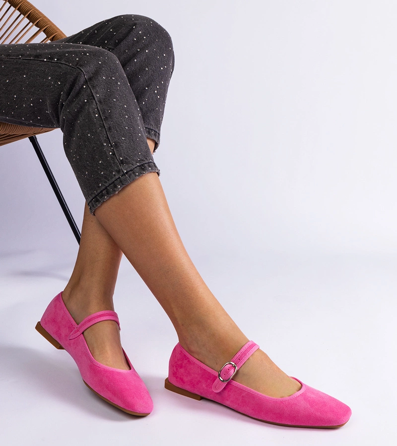 Różowe balerinki o matowym wykończeniu zapinane na sprzączkę