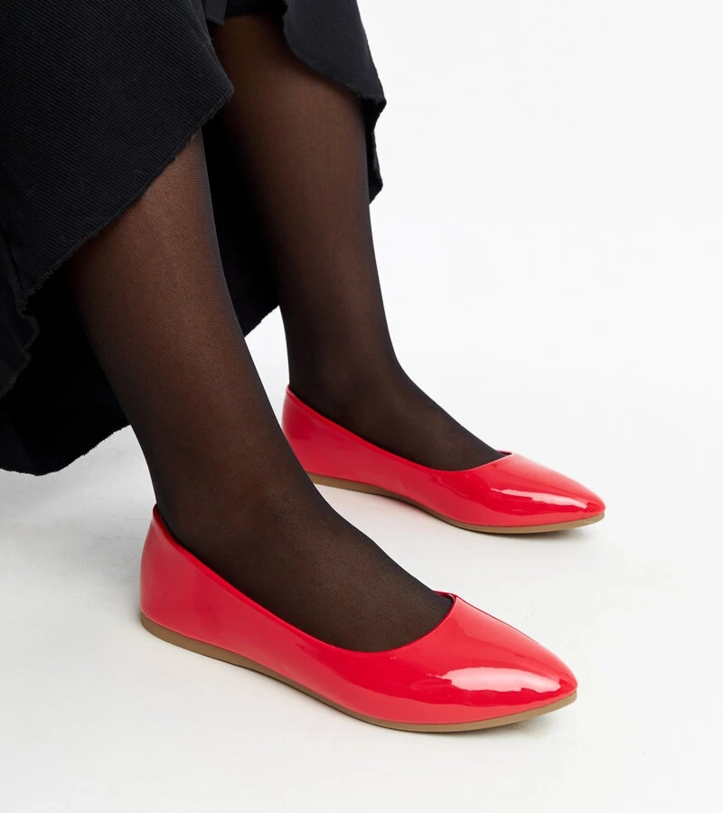 Czerwone balerinki o matowym wykończeniu zapinane na sprzączkę