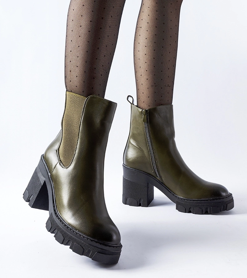 Hers Czarne damskie botki na masywnym obcasie i platformie