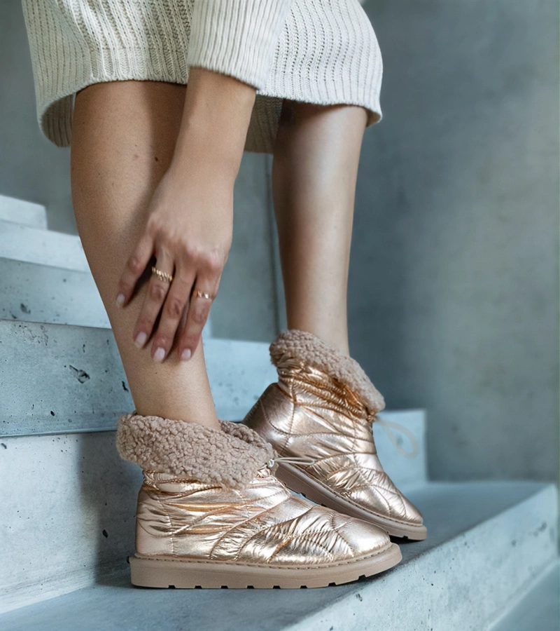 Ciemnobeżowe śniegowce na platformie ocieplane futerkiem