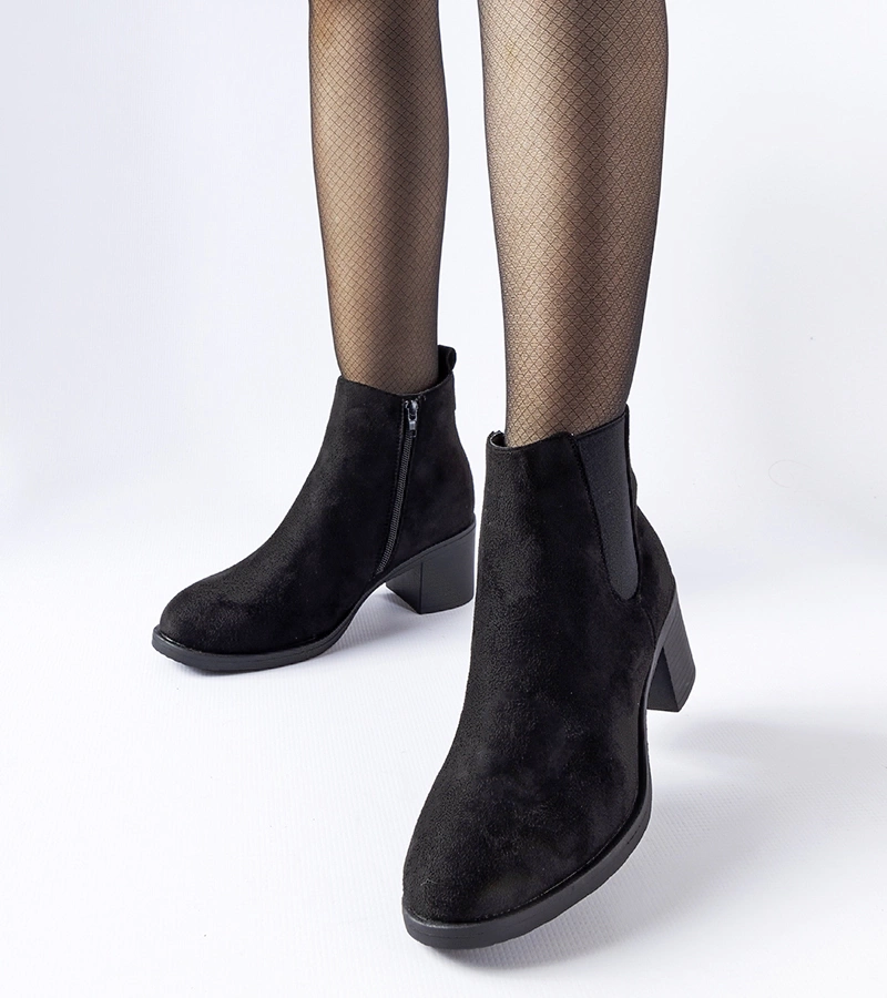 Czarne botki na niskim słupku eko-zamsz