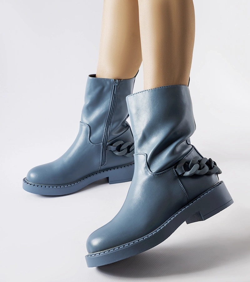 Niebieskie ocieplane botki z łańcuchem
